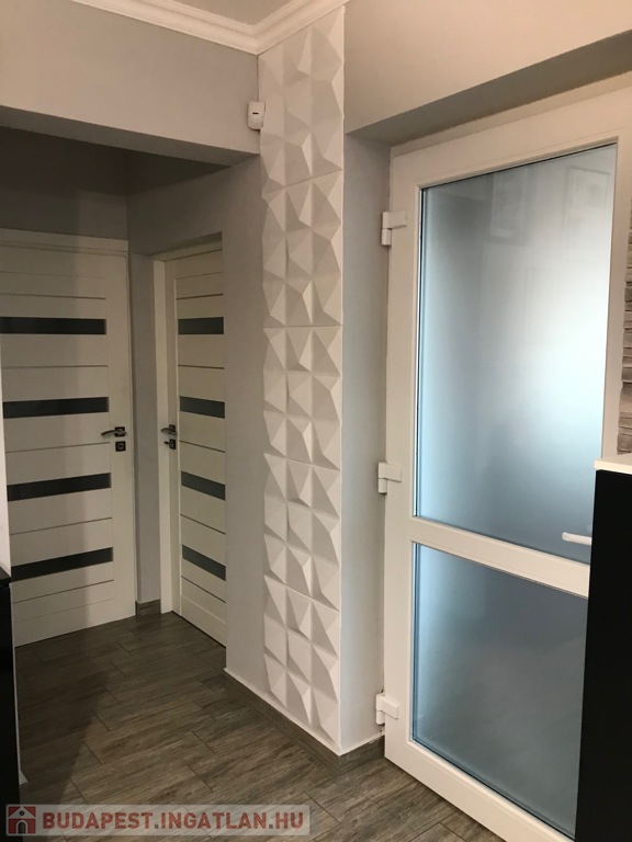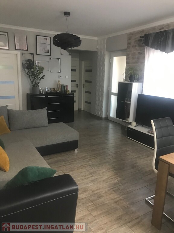 Padlózat: a szobákban melegburkolat ( laminált padló) található. A fürdőszoba, kamra, amerikai konyha, előszoba, terasz hidegburkolattal van ellátva.