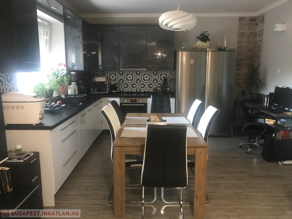 745 m2 a telek teljes területe, amelyből 120 m2 lakóház. Benne 3 db szoba, 2 db fürdőszoba, faltól falig üvegfallal ellátott világos előszoba, amerikai konyhás nappali, kamra, nagy fedett terasz, 3mx3m -es pince viakolor burkolattal. 70 cm-es beton alappal rendelkezik a lakóépület 70 cm széles falazattal, 10 cm-es szigeteléssel ellátva. A fűtés a legkorszerűbb gázcirkó kazánnal megoldott, a szobákban radiátorok melegítenek, a nappaliban és a fürdőszobákban padlófűtéssel ellátott.