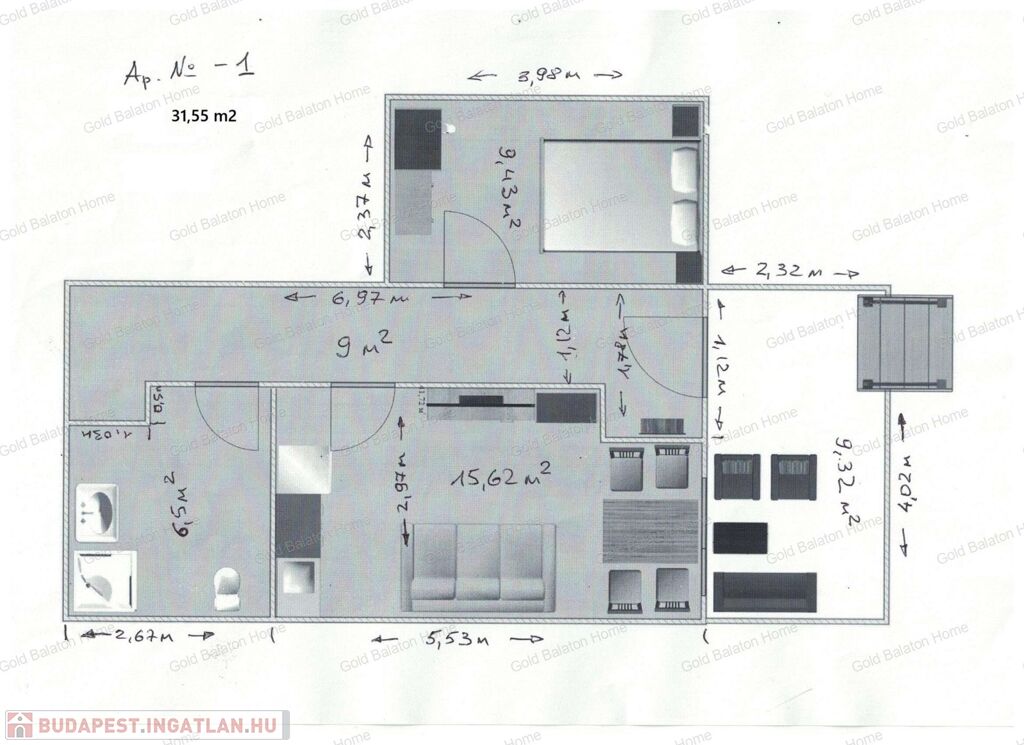 - apartman 3 (2 fő részére): 1 hálószoba, nappali-konyha-étkező, fürdőszoba zuhanyzóval+WC