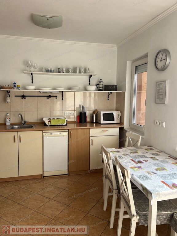 A ház két szintes, a földszinti részen egy lakás lett kialakítva,ahol konyha +étkező, nappali, fürdőszoba, hálószoba, erkély, terasz , illetve egy nagy háztartási helyiség található. Az emelet külön bejáraton át közelíthető meg kívülről , itt kettő apartmannal van. Mindkét apartmanban konyha - étkező, fürdőszoba, nappali, hálószoba, erkély várja a vendégeket. Az udvaron egy különálló földszintes, 50 nm-es vendégház van. /konyha-étkező- nappali, fürdőszoba, hálószoba / Az udvar rendezett, napozási és grillezési lehetőséggel, illetve parkolási lehetőséggel 6 gépkocsi számára.