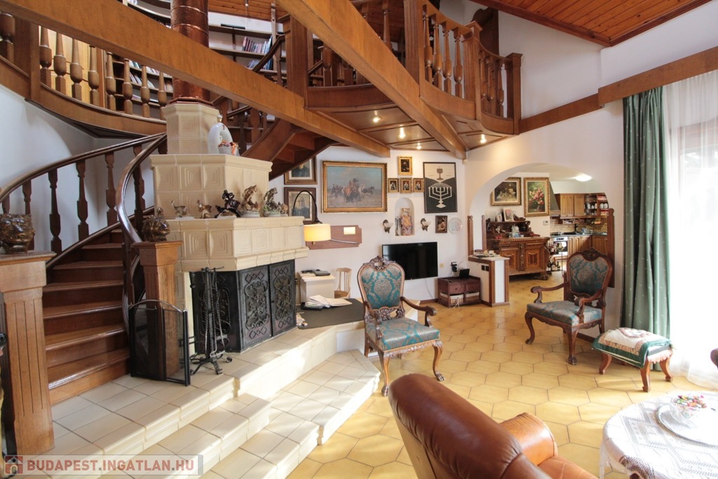 A ház meleg és barátságos hangulatát klasszikus mesterek kezei formálták. Ehhez hozzájárulnak a tölgyfa ajtó- és ablakkeretek, a beépített szekrények, valamint az egyedi megjelenésű olvasógaléria és lépcső. Az amerikai konyhás nappaliban helyet kapott egy Alfred Hitchcock filmje által inspirált kandalló, melynek réz kéménye a galéria légterét átszelve fűtőtestként is szolgál.
