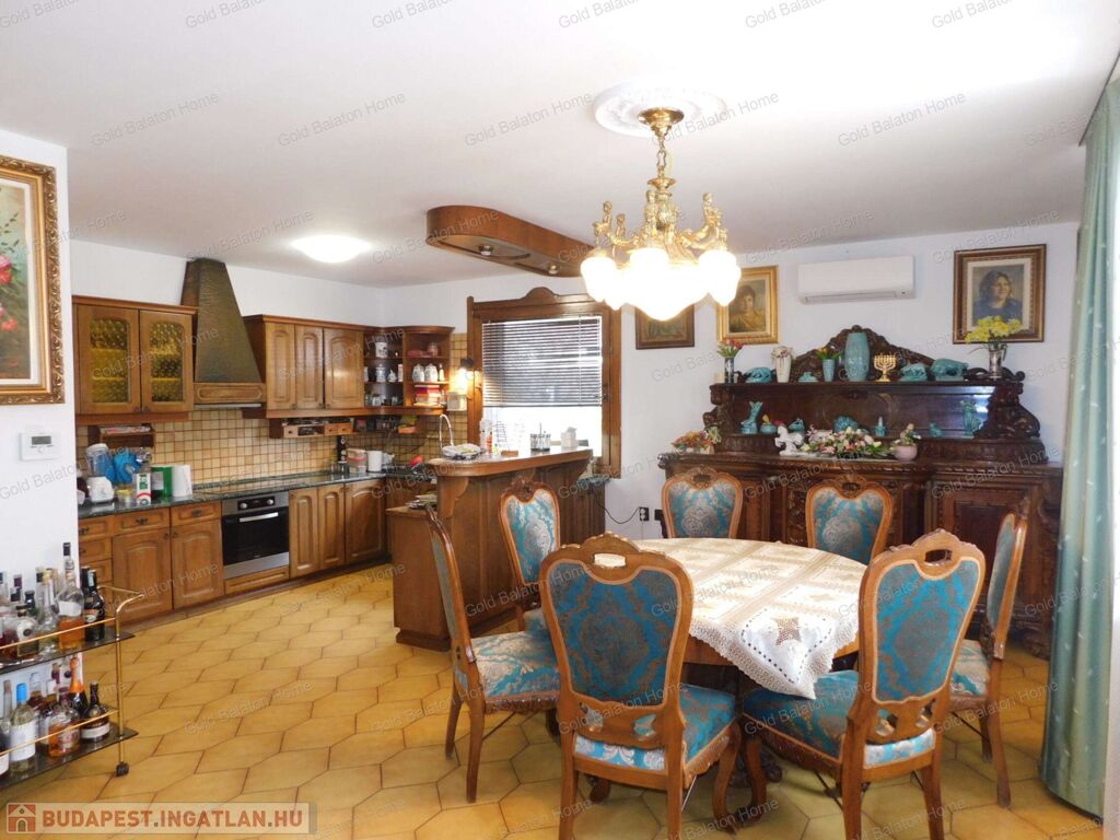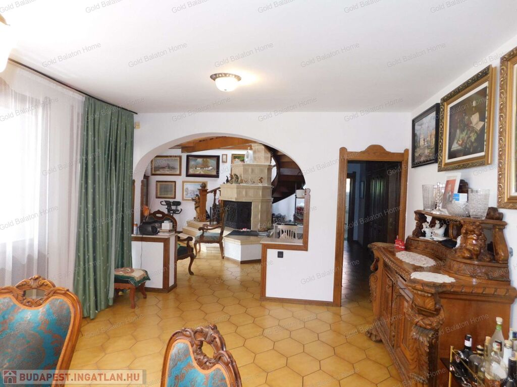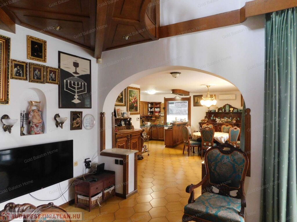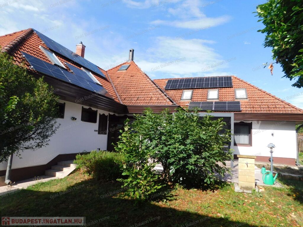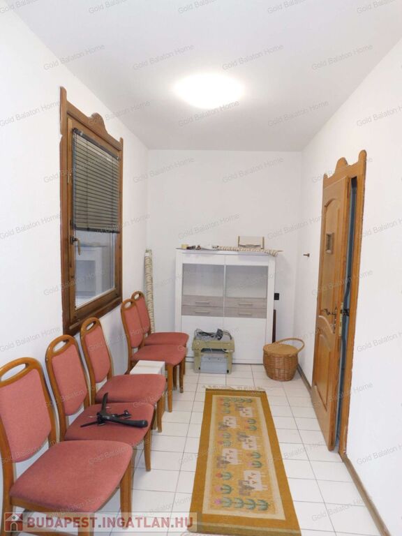A családi ház két külön bejárattal rendelkezik, az egyik bejáraton az iroda, vagy akár rendelőként használható helyiségek vannak. A belső térből átjárás lehetséges az iroda és a duplagarázs felé is. Hévíz egyik csendes utcájában részben bútorozott, 5 hálószobás, nagy nappalis CSALÁDI HÁZ, gondozott kerttel és rendezett udvarral - a Hévízi tótól mindössze 1100 méterre, a Balatontól 7km-re eladó.