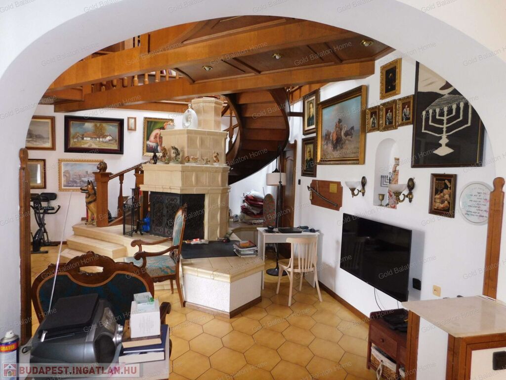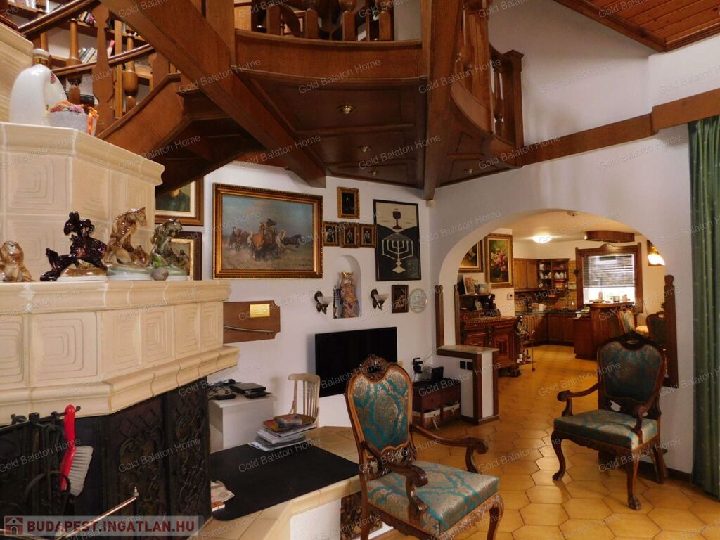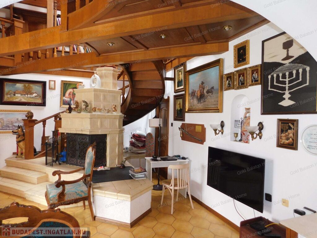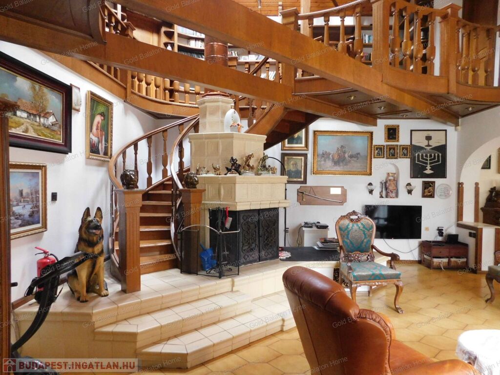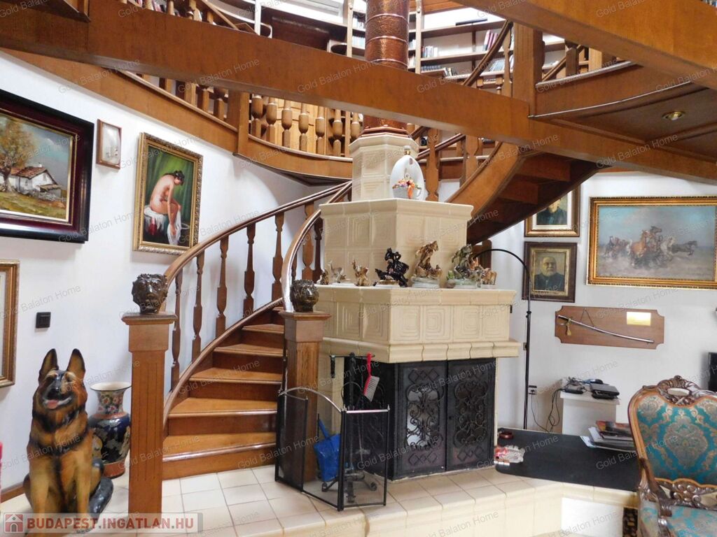 - igényes, stílusos berendezés: az ajtók, lépcsők, korlátok, beépített szekrények mind tölgyfából készültek, egyedi tervezésűek
