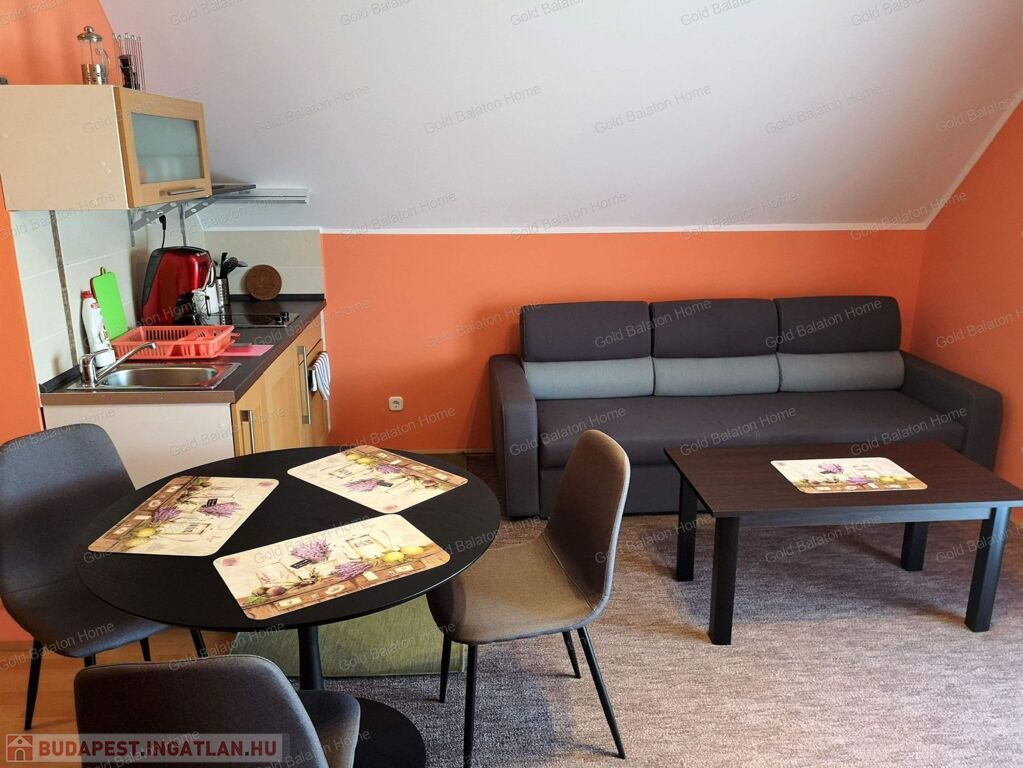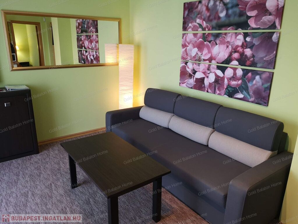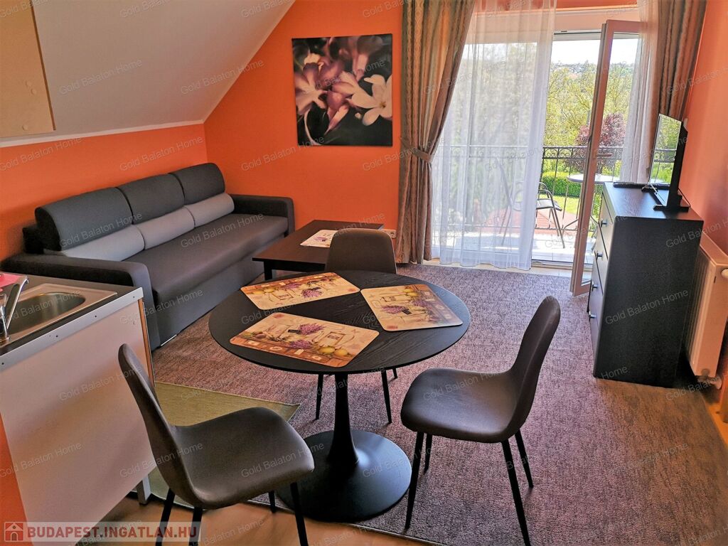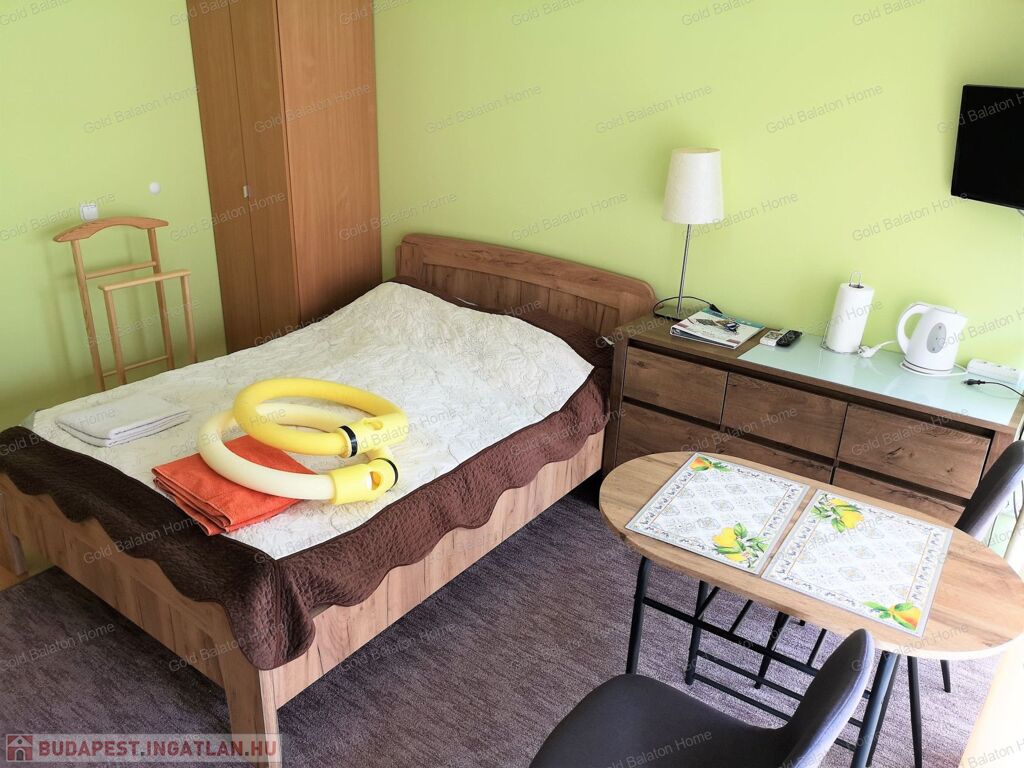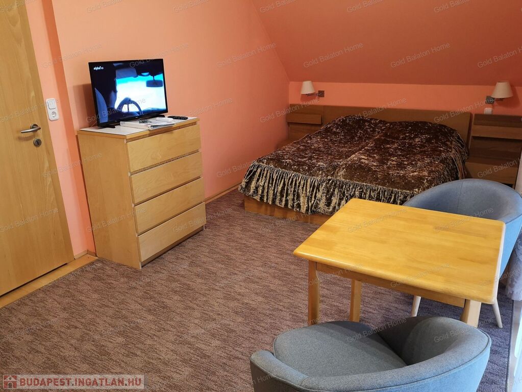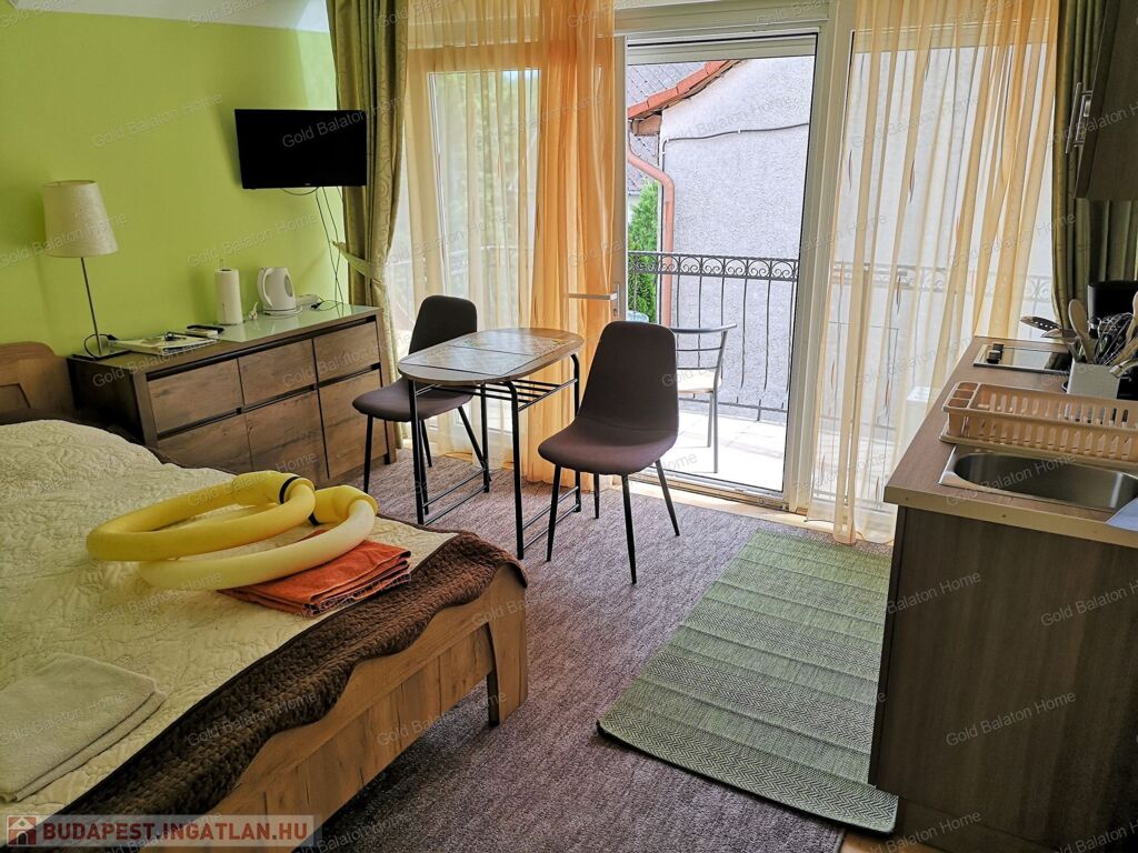 - 2. emeleten összesen 3 apartman: 2 db stúdió (szoba, zuhanyzó + WC, erkély) és 1 db. 2 szobás apartman (konyha-étkező-nappali, hálószoba, zuhanyzó+WC, erkély)