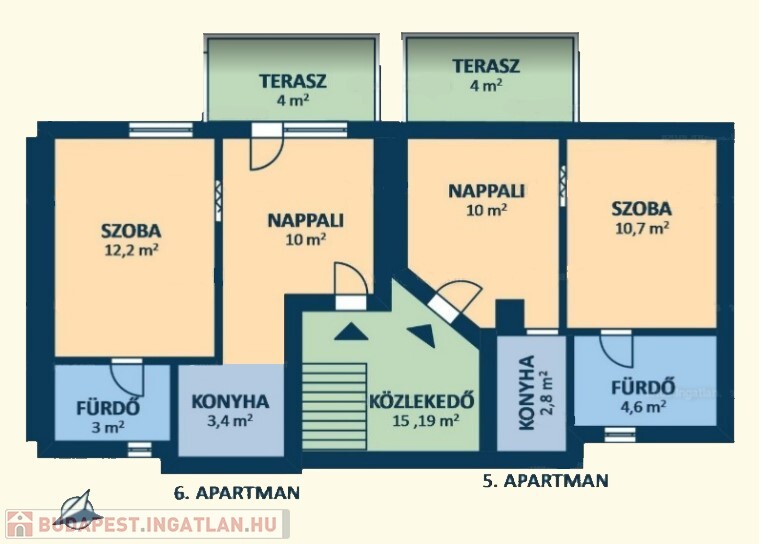 • Felső szint: Két külön apartman, mindegyik nappalival, konyhával és fürdőszobával.