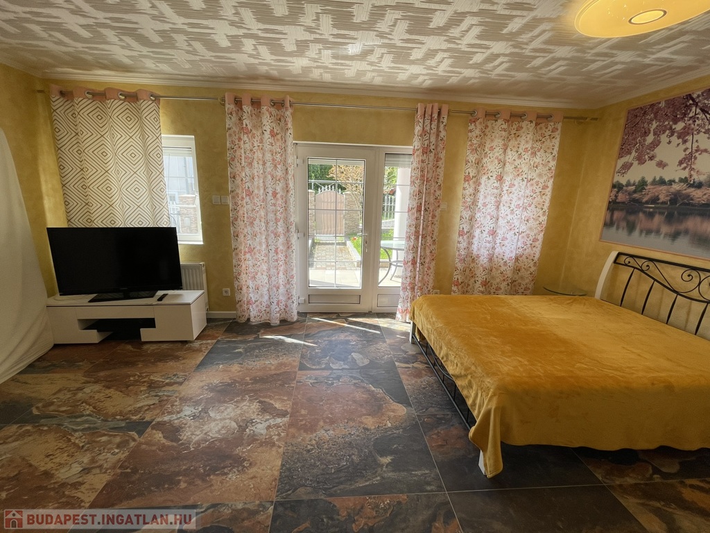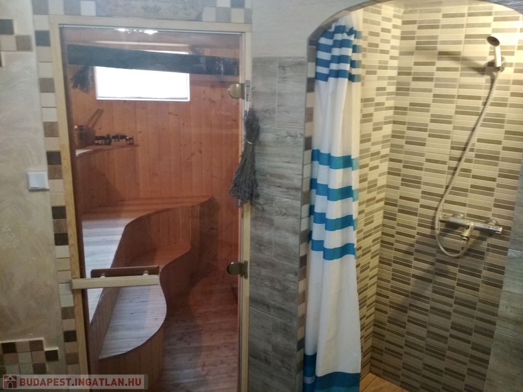 • Melléképület: A garázsból szaunát alakítottak ki, mellette pedig egy további, teljesen felszerelt apartman (szoba, nappali, konyha, fürdőszoba) is helyet kapott.