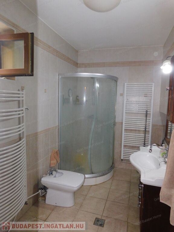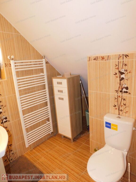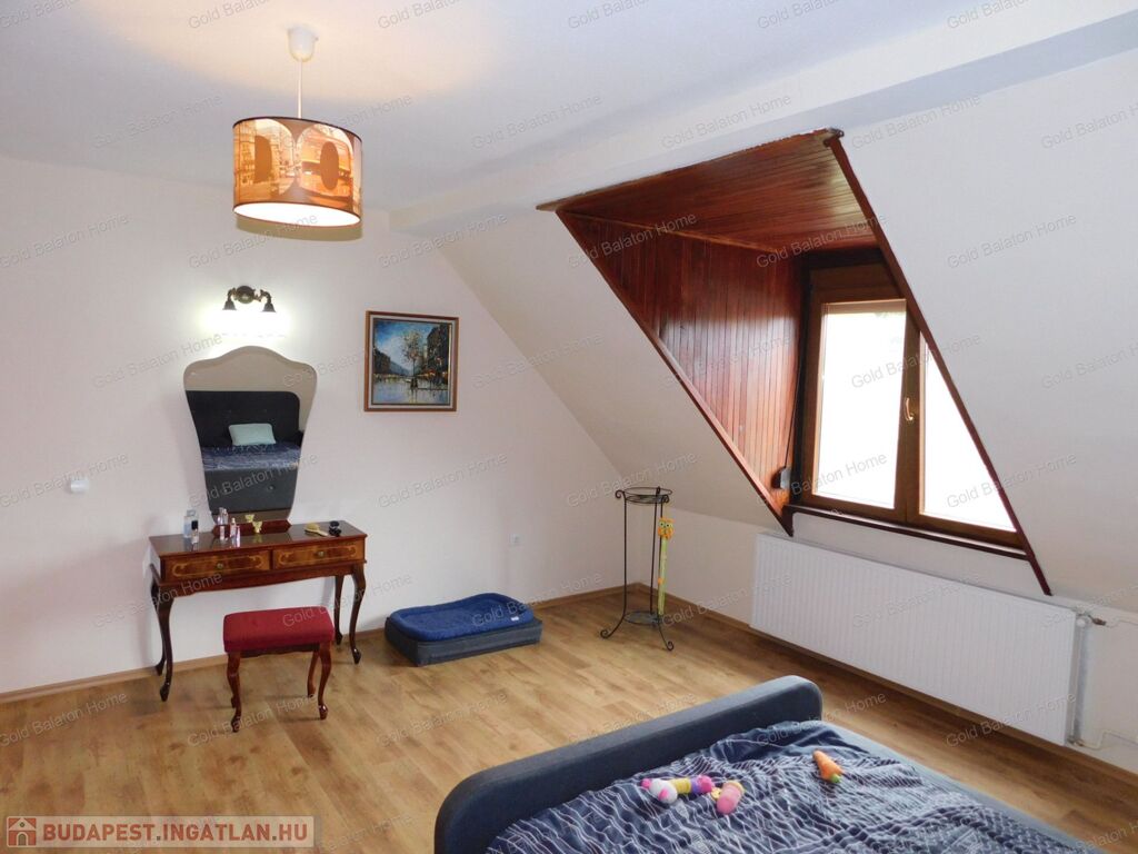- tetőtér: közlekedő, folyosó beépített szekrényekkel, 3 hálószoba + 1 félszoba, fürdőszoba zuhanyzóval és WC -vel