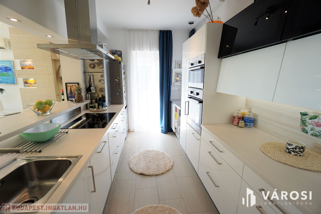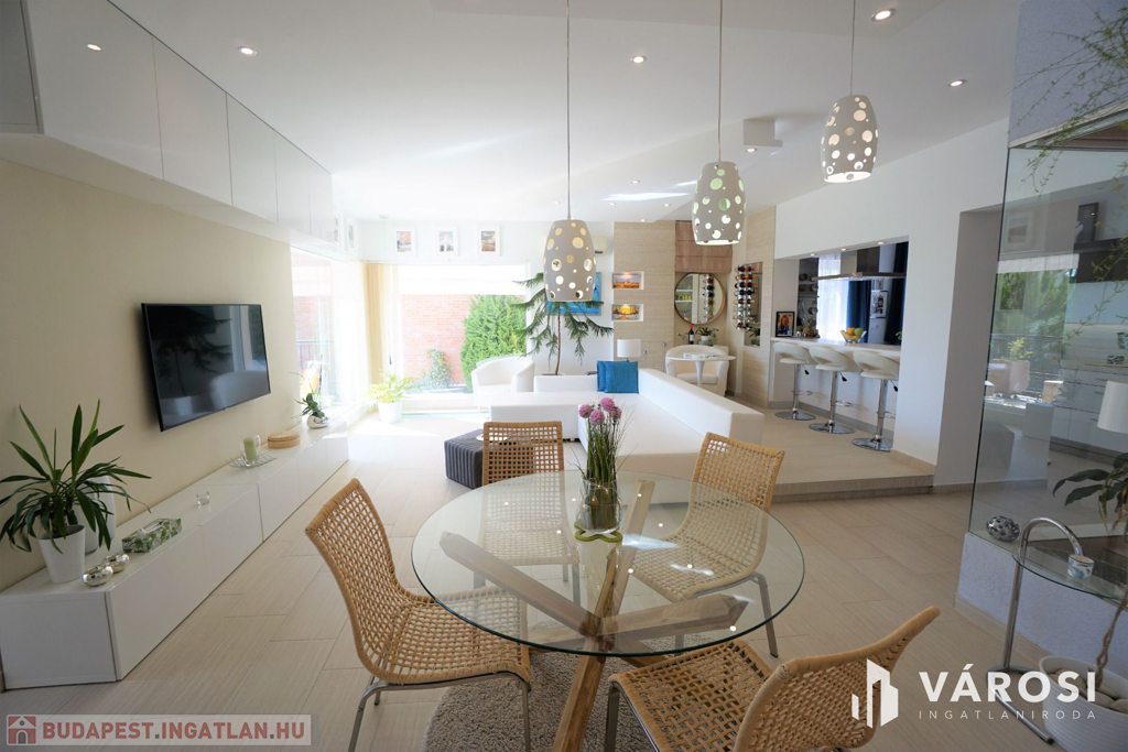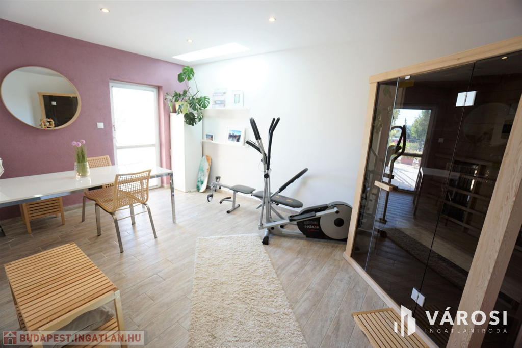 2018-ban, magas minőségben épült ez a különlegesen megtervezett, igényesen kialakított, három szintes 237 nm-es ház, mely egy 612 nm-es telken helyezkedik el. Minden helyiségben elegáns, modern stílus dominál. Ízléses kialakítás és berendezés, magas minőségű beépített anyagok, átgondolt helykihasználás jellemzi.