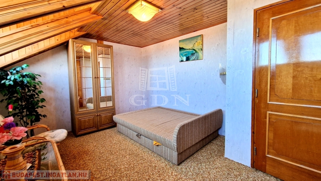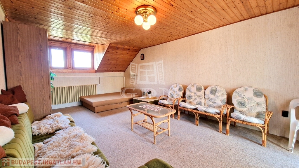 - A tetőtérben 4 hálószoba, 2 zuhanyzós fürdőszoba, 1 konyha és közlekedő folyosó található.