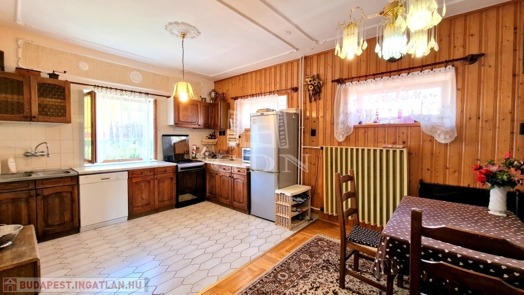 - Az első emeleten - központi szint - található 2 hálószoba, egy nagy gépesített konyha - étkező, egy nagy fürdőkádas fürdőszoba, közlekedő folyosó és nagy nappali a hozzá tartozó hatalmas, fedett, panorámás terasszal.