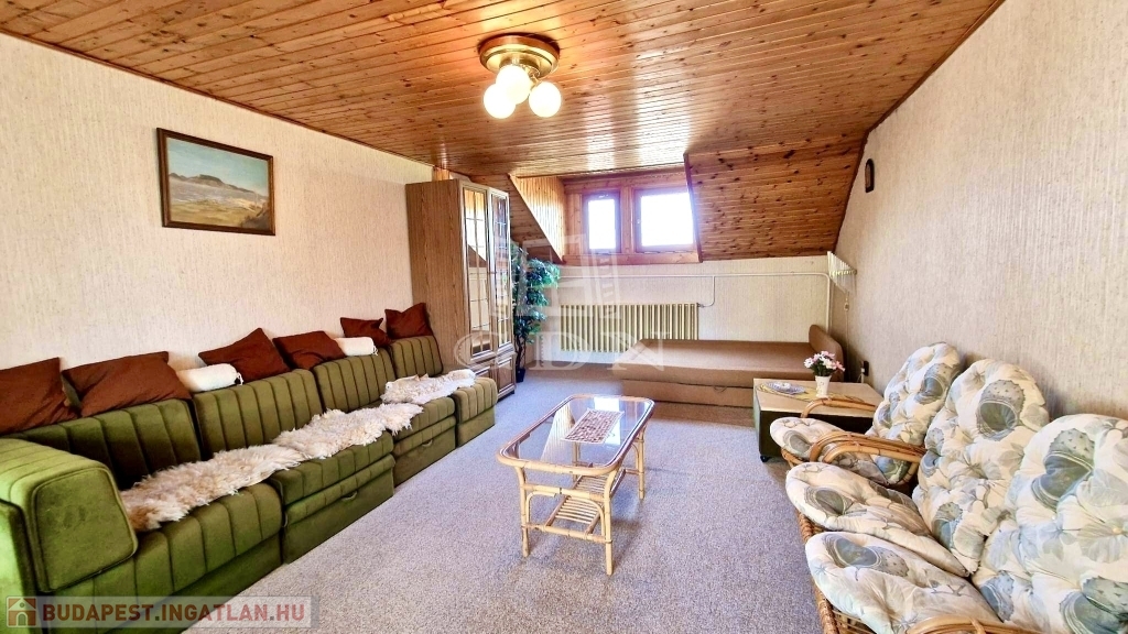 - A tetőtérben 4 hálószoba, 2 zuhanyzós fürdőszoba, 1 konyha és közlekedő folyosó található.