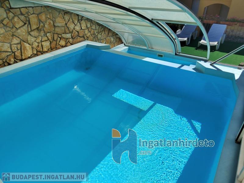 - Szabadtéri medence napozóágyakkal (méret: 6,3 m × 4,6 m, mélység: 60?135 cm)