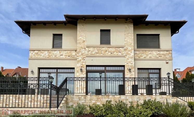 Hévíz csendes panorámás utcájában kínálunk eladásra egy egyedi tervezésű és egyedi kivitelezésű, 1033 m2-es telken, 2015-ben épített 274 m2-es öt szobás családi házat! A házhoz egy nagyon szépen parkosított és gondozott diszkrét kert tartozik. A ház fűtési rendszere két körös: padlófűtés és radiátorok, illetve a használati meleg vízre napkollektor is rendelkezésre áll. A házban egy elegáns és jól felszerelt konyha található, gránit munkapulttal. A konyha és a nappali egyben van. A nappaliban egy szép kandalló is helyet kapott. A földszinten található még egy dolgozószoba, gardrób, vendég WC, a fűtés és melegvíz gépészeti terme és garázs, műhely egyben. Az emeleten lett kialakítva három hálószoba két fürdőszoba, gardrób, mosókonyha és szauna. A nyílászárók is egyedi méretre gyártott szigetelt műanyagok szúnyoghálóval és automata redőnnyel szereltek. A szobákban mindenhol egyedileg tervezett és gyártott olasz bútorok találhatók. A szobák laminált parkettával, a többi helyiség igényes kerámia lapokkal burkoltak. Minőség és stílus egyben! A tófürdő egy kilométerre, üzletek, éttermek ötszáz méteren belül, Keszthely és a Balaton 6-7 kilométerre, Bécs és Budapest egyaránt kétszáz kilométerre elérhető!