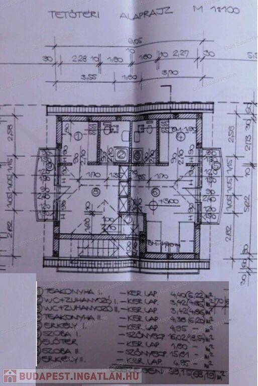 tetőtér (nettó: 59,15 nm, bruttó: 68,19 nm): 2 apartman (szoba, konyha - étkező, fürdőszoba zuhanyzóval és WC – vel, erkély)
