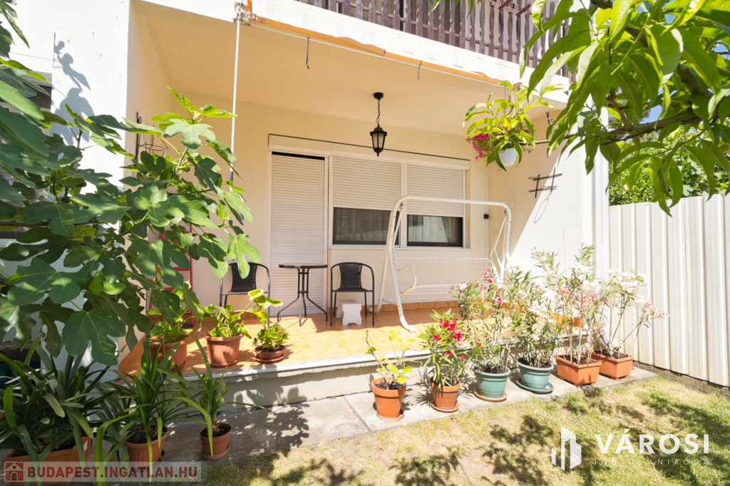 A ház mögötti udvaron termő bio cseresznye, körte, és füge biztosít gyümölcsöt a család számára. A locsolást 80 méter mélyre fúrt kút segíti. Az épület előtti kert gyönyörű virágaival pihentetően hívogató.