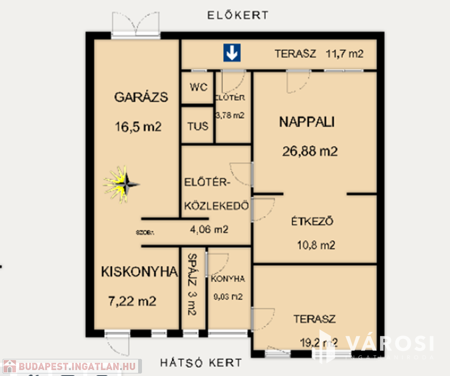 A ház alsó szintjében található a 25 m2-es garázs és 20 m2-es kiskonyha.