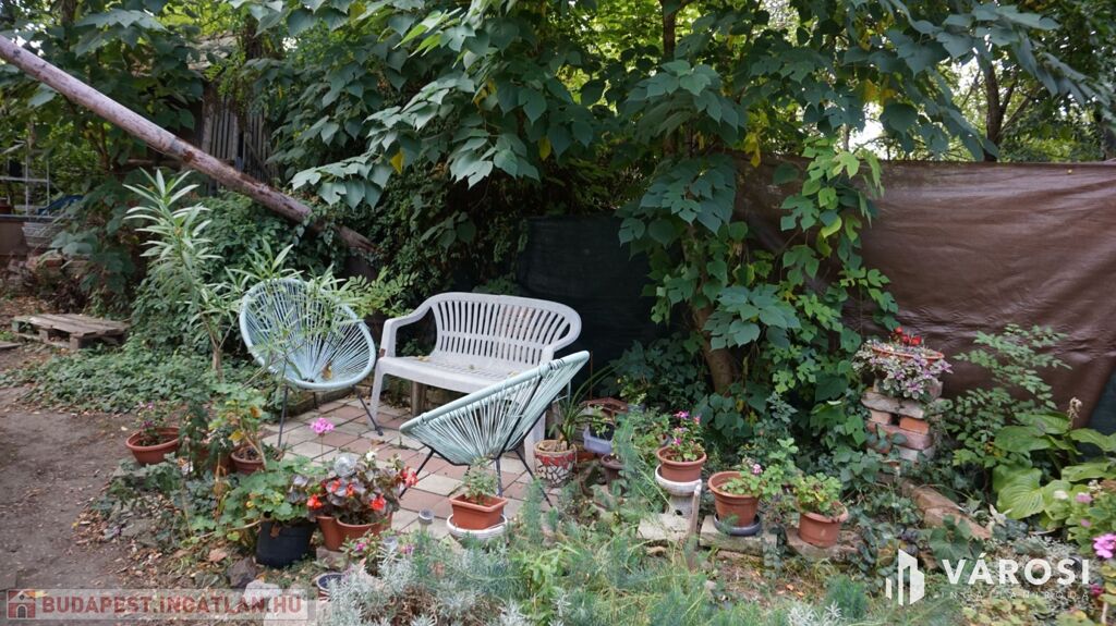 A telek kellemes méretű, tágas fás résszel, kiülővel, kis veteményes kerttel.
