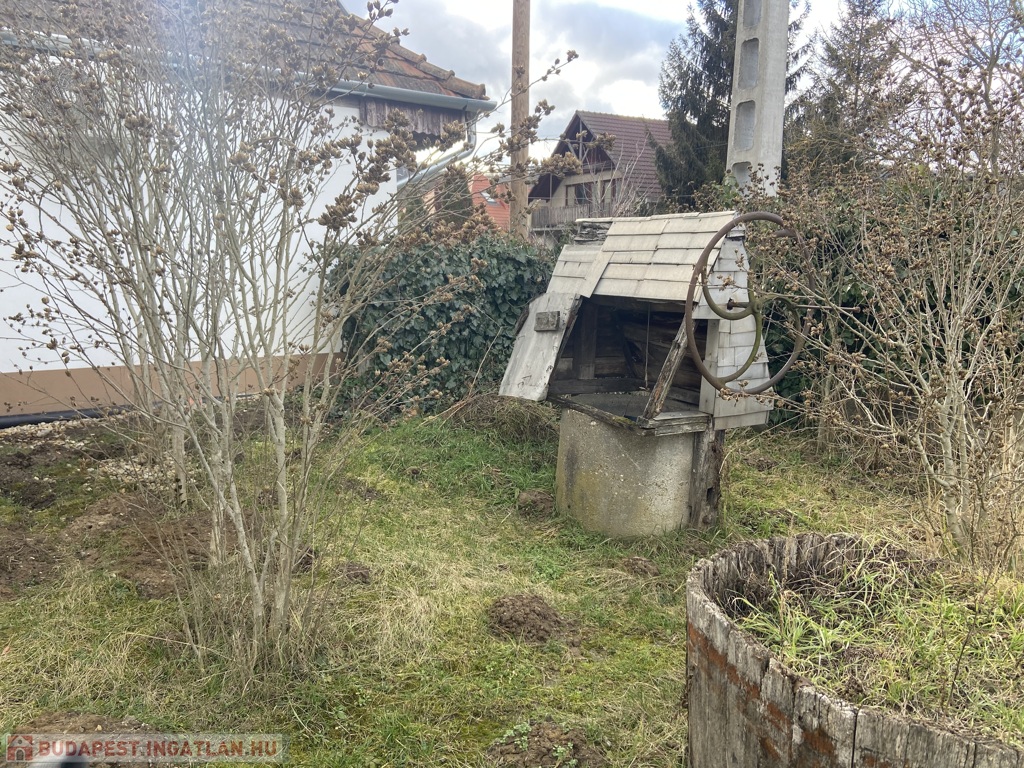 A közel 1000m2 alapterületű nagy méretű kert a lakórész mögött kereszteben húzódik, melyben gyümölcsfák vannak. A terület gazdálkodásra, konyhakert kialakítására kiváló lehetőséget kínál.