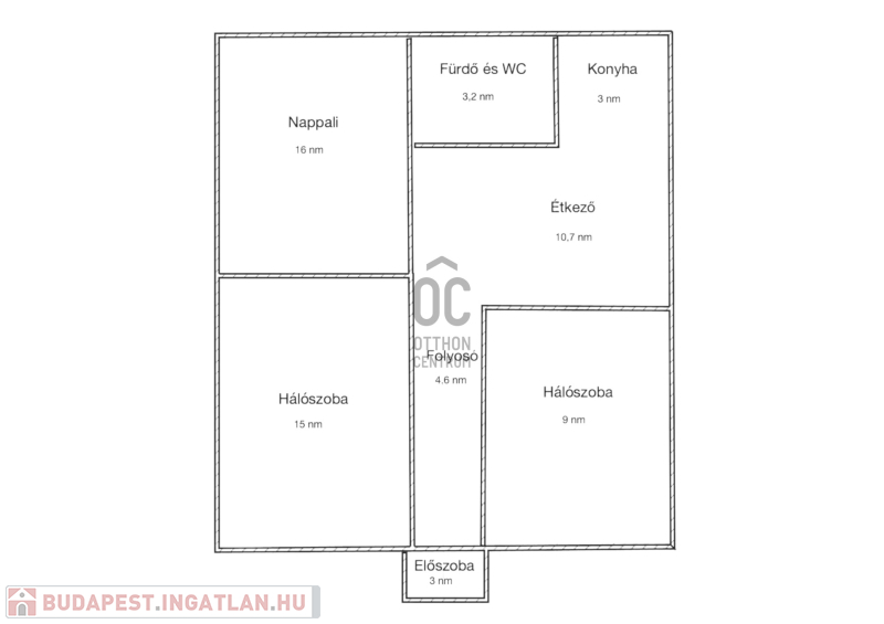 - Helyiségek: nappali, 2 hálószoba, konyha, fürdőszoba, WC, előszoba
