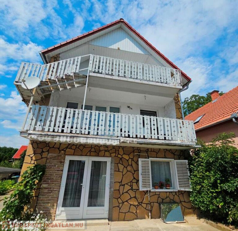 Igalban a gyógyfürdőtől 5 perc sétára kínálunk megvételre két, egymással kertkapcsolatban lévő házat. Az egyik egy szépen felújított háromszintes lakóépület, ahol mindhárom szinten ki van alakítva egy-egy önállóan megközelíthető lakrész saját konyhával és fürdővel, így külön is használhatók, kiadhatók. A földszint helyiségei: nappali étkezővel, terasszal, közlekedő, ahonnan minden nyílik, konyha, kamra, fürdő, külön WC, mosókonyha, tároló, egy hálószoba, és egy tágas előtér, ami jelenleg alkotó műhely is egyben. Alapterülete 77 m2. Az első emelet helyiségei: étkezős nappali konyhafülkével, erkéllyel, fürdő WC-vel és két háló. Ez a szint 43 m2 plusz a 11 m2-es erkély. A legfelső szint az előzőhöz hasonló elosztású, csupán kicsit kisebb, 40 m2-es, amihez 8 m2-es erkély tartozik. A teljes lakóterület tehát 160 m2. Ez az épület állandóan lakható, használható, fűtése cirkós, külső nyílászárói hőszigeteltek, műanyag keretesek. A hozzá tartozó telek 285 m2. A másik épület a kerten keresztül, de önállóan is megközelíthető, kétszintes, jó állapotú, hétvégi ház megjelölésű, egyben használható. A földszintre kellemes, tágas fedett, növényzettel körül vett teraszról lépünk be az étkezős nappaliba. Van még itt két hálószoba, konyha, fürdő, külön WC és egy kis közlekedő. Az emeletre a nappaliból vezet a lépcső, fent szintén ki van alakítva egy nappali, két háló, és itt is van fürdő, külön WC. A teljes alapterület 81 m2, plusz a terasz kb. 15 m2. Itt központi fűtés helyett a földszinten van egy kandalló, illetve elektromos radiátorok állnak rendelkezésre szükség esetén a hűvösebb időkben. Ez az épület ezért jelenleg inkább a melegebb szezonban használható, bár a külső nyílászárók itt is hőszigeteltek, műanyag keretesek. Megoldható az állandó kihasználhatóság, lakhatóság is. A telek 329 m2-es. Mindkét telek (összesen: 614 m2) szépen karbantartott, parkosított. Csendes, nyugodt utcában fekvő, bejáratott vendégkörrel rendelkező 4 szálláshely (lakótér összesen: 241 m2, teraszok, erkélyek: 50 m2) remek elhelyezkedéssel a Balaton és Kaposvár között, a neves gyógyvíz városában! Az előzőekkel összefüggő telek vásárolható még hozzá.