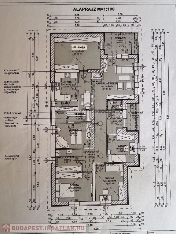 Az ingatlan alapterülete 140 négyzetméter, míg a telek mérete 1003 négyzetméter. A ház nappali plusz 4 szobával rendelkezik. Fürdőszobában szaunával és egy hanggátoló falakkal ellátott SAJÁT PROFESSZIONÁLIS MOZISZOBÁVAL! Amelyet az ár teljes felszereléssel tartalmaz!