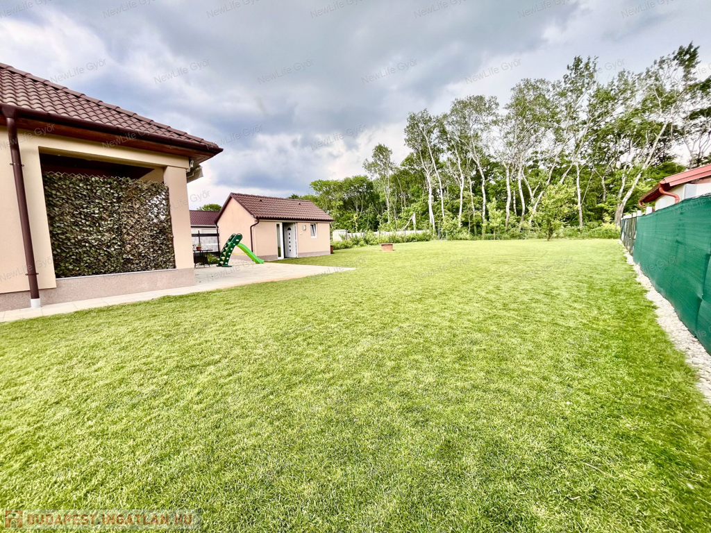 A kert gyönyörűen parkosított, öntözőrendszer és robotfűnyíró segíti a mindennapokat! Egy kis tároló melléképület is található benne.