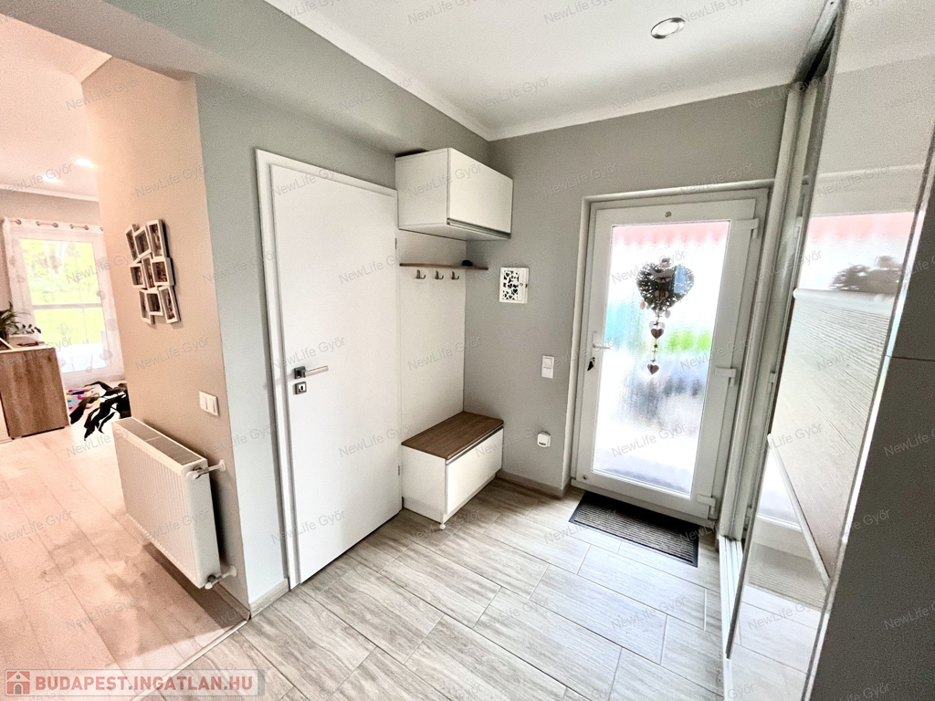 A házba belépve egy előszobába érünk, ahol a beépített szekrényben rengeteg pakolós hely van, mely a mindennapokat segíti.