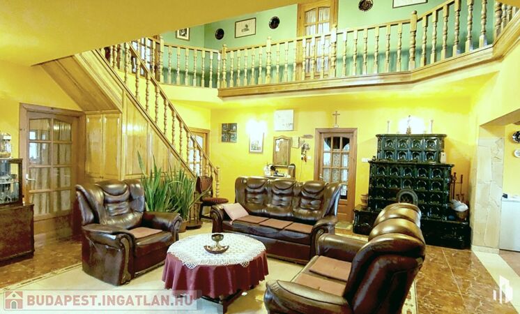 Emelet: galériás körfolyosó, 4 hálószoba, nappali, fürdőszoba + tároló, loggia