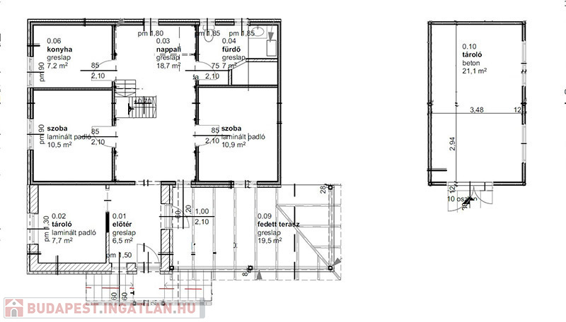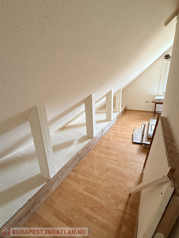 • 68,5 nm földszint (Nappali, 2 szoba, konyha, fürdő, tároló + 40 nm tetőtér (2 szoba)