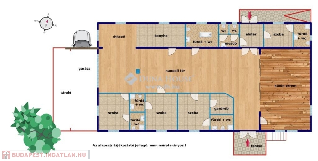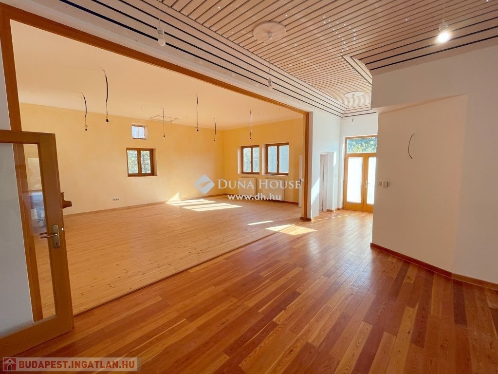 A település nyugati oldalán bújik meg ez a különleges adottságú, sokoldalúan hasznosítható ingatlan. Alkalmas lehet kulturális, egészségügyi, üzleti vagy magáncélra egyaránt de kombinálva is.Az épület 2 szintes (alagsor 220 + földszint 250 m2) , eredeti funkcióját tekintve az alagsorban gyümölcsfeldolgozó, később pékség üzemelt. A földszinten az elmúlt években alapos átalakítás és korszerűsítés zajlott, korábban pajtaszínház volt, később gyógyászati funkcióra lett áttervezve. A lakószint éke a tekintélyes méretű (94 m2) nappali tér, pompás kilátással a környező tájra. Egy elhúzható fa-válaszfal szeparálja a ( 52 m2 -es) különtermet. Ezeken kívül konyha, étkező, négy szoba, öt fürdő valamint mellékhelyiségek vannak kialakítva. Nyugati oldalról egy könnyűszerkezetes melléképület csatlakozik a házhoz.