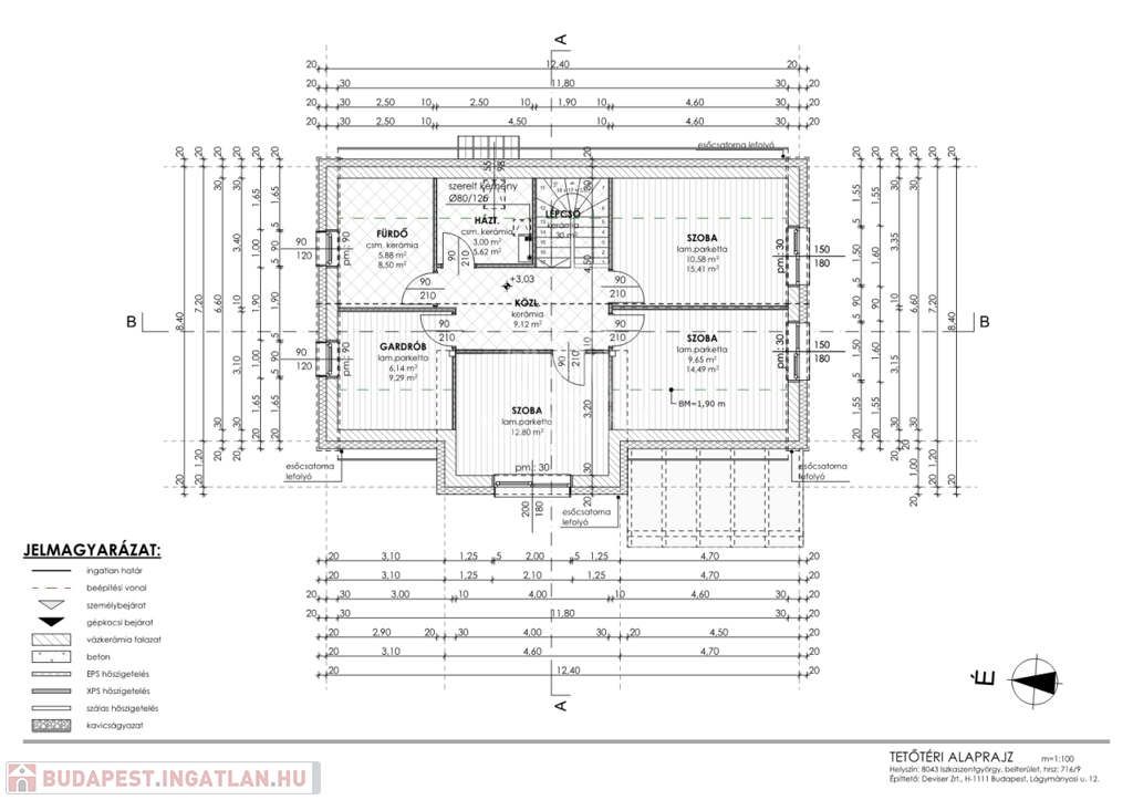 - Emelet: közlekedő, 3 tágas szoba, 1 fürdőszoba, gardrób, háztartási helyiség,