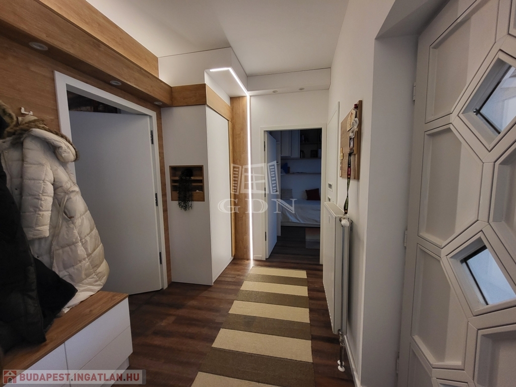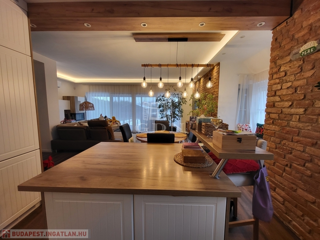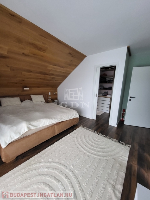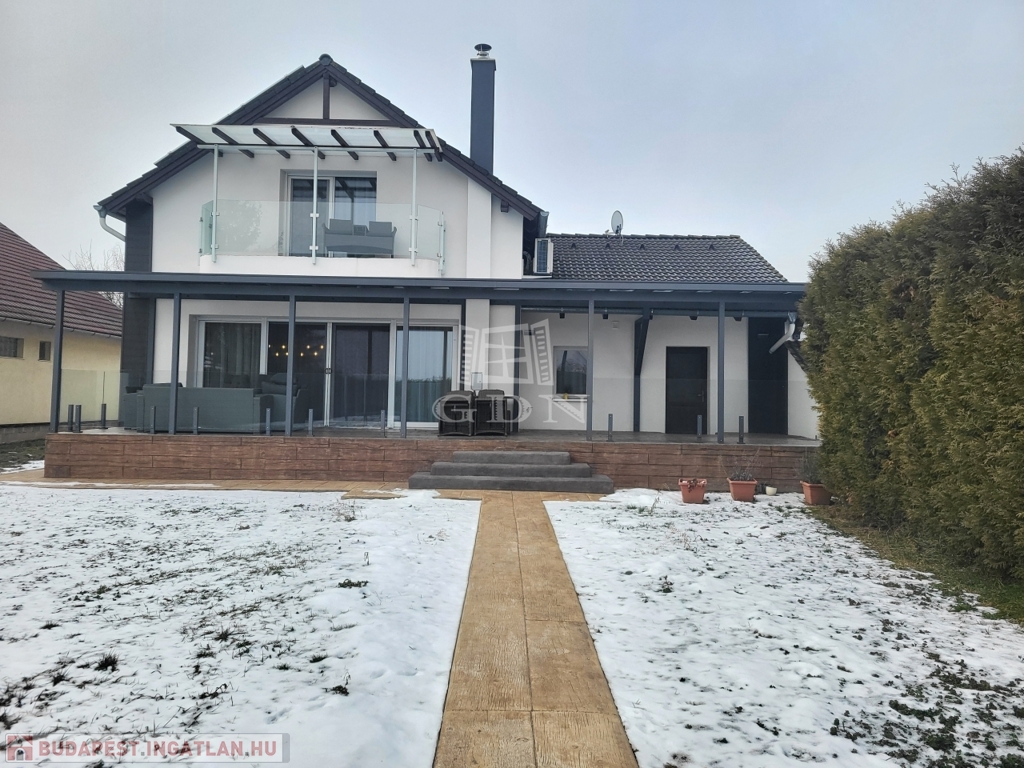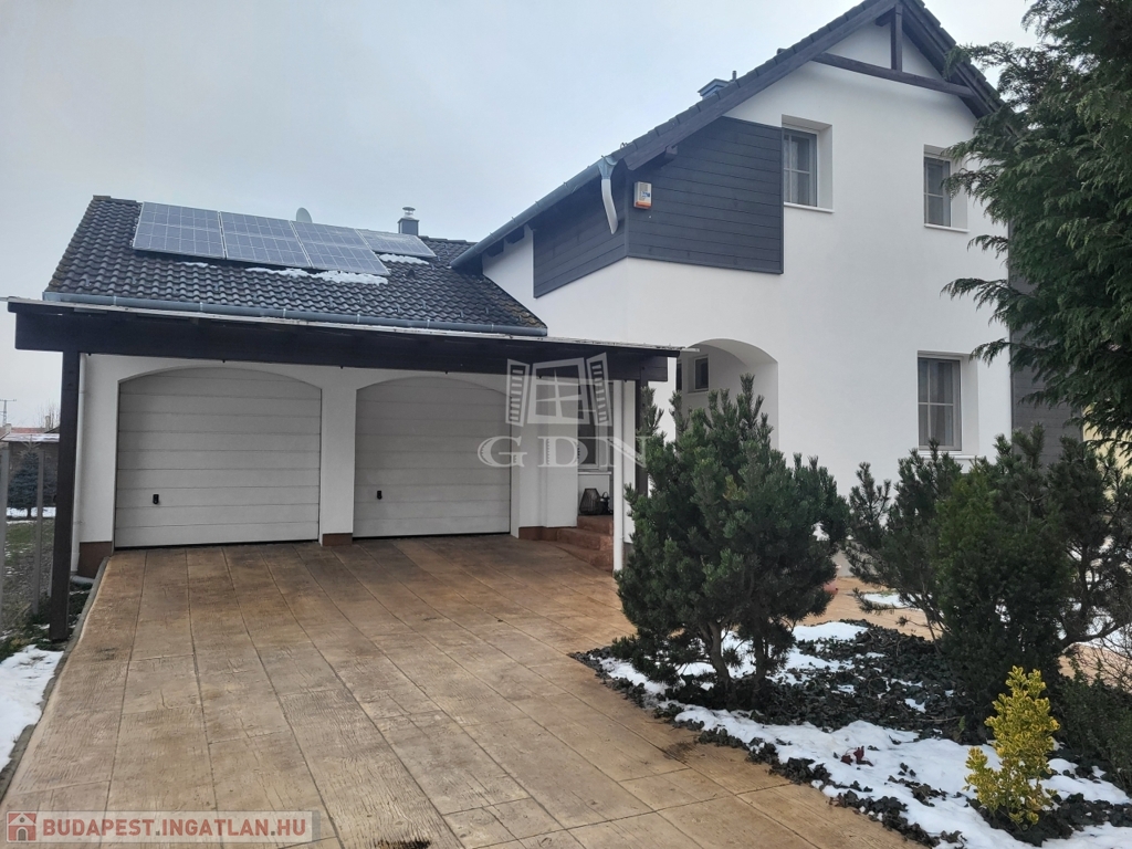 Ják átmenő forgalomtól mentes csendes utcájában eladó, páratlan adottságokkal rendelkező luxusingatlan. A lakóház mindkettő szintje átgondolt,praktikus, kényelmes kialakítású. Magas műszaki, technikai felszereltséggel átalakított ingatlan 2022-ben nyerte el kifogástalan esztétikai formáját. Tulajdonosai különös figyelmet fordítottak a harmonikus megjelenésre, a helyiségek egyenletes, kellemes fényviszonyainak biztosítására. Ennek érdekében hangulatos fali világítócsatornák, ledszalagok, álmennyezeti világítások, bútorok mögé épített világító felületek kaptak helyet. Négy rétegű üvegezéssel ellátott hatalmas tolóajtós felület biztosítja a természetes fényviszonyokat az ingatlan terasza felöl. Az erkélyajtó elektromos aluredőnnyel felszerelt. Közel 40 m2 -es terasz köti össze a házat az 1400 m2-es , szépen karbantartott kerttel. Elektromos hálózata 2x16 A, 1x40 Amper. A tetőn 23 db napelem található, 9.4 kw teljesítménnyel, invertellel. A dupla garázsban elektromos autó töltési lehetrőséggel. Az ingatlan fűtése Bosch kondenzációs kazánon kívül, modern cserépkályhával, központi hűtő -fűtő klímával történik, 5 db Daikini klíma került beépítésre. A ház négy hálószobával, három fürdővel rendelkezik. Amerikai konyhás nappalija 47 m2. Érdekessége a hangulatos ablakfülkéje izgalmas