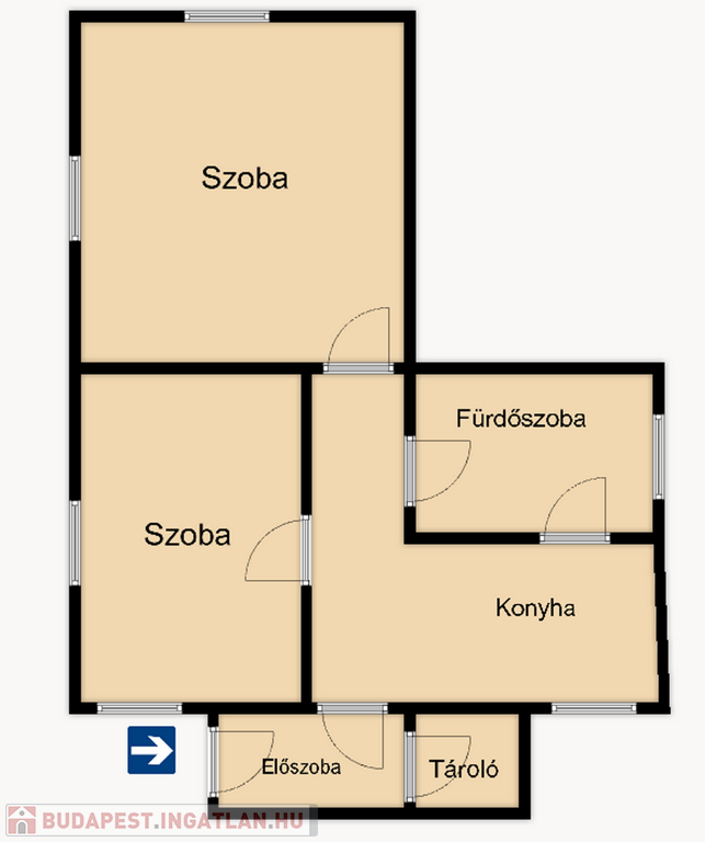 Két különnyíló, világos szoba, fürdőszoba, konyha található a jelenleg kályhafűtésű ingatlanban. Gáz bevezethető.