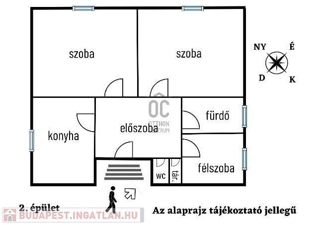 2. lakóegység: 1965-ös építésű, "Kádár-kocka" (70 nm). Helyiségei: előszoba, konyha, két szoba, félszoba, WC, fürdő és egy kis tároló. Fűtése gázkonvektorokon keresztül történik. A lakóegység igény szerinti felújítást igényel, szerkezetileg teljesen rendben van, korának megfelelő állapotú. Két utcafronti ablaka műanyag, a többi fa.