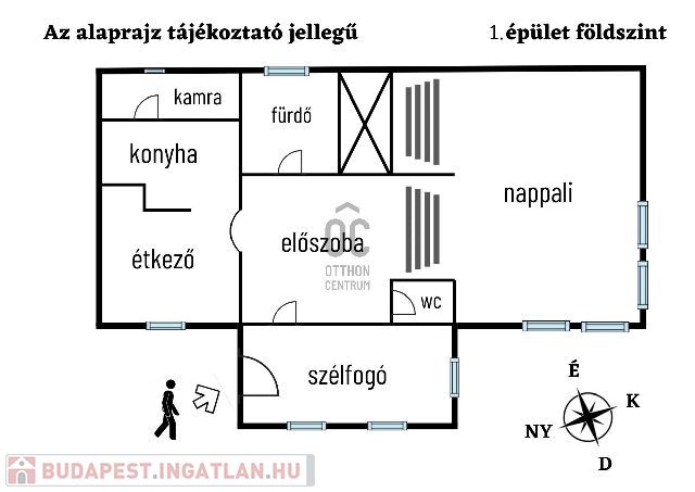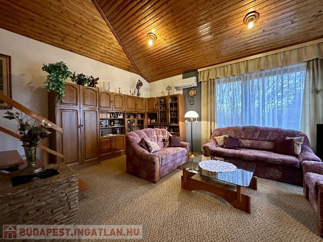 1. lakóegység: 1980-as építésű kétszintes épület (81 nm). A földszinten szélfogó, előtér, étkező-konyha, nappali, kamra, fürdőszoba, WC található, az emeleten pedig egy folyosóról nyíló két szoba. Az ingatlan nagyon jó megoldásokkal rendelkezik: tágas terek jellemzik, sok ablak teszi világossá a fő élettereket, fűtése pedig gázzal történő légfűtés, radiátorok nem találhatók az ingatlanban. Két hűtő-fűtő klíma (az étkezőben és a nappaliban) is gondoskodik a kellemes hőérzetről. Nagy, kényelmes erkély kapcsolódik az emelethez, az épülethez pedig egy 4X5 m-es garázs is tartozik.