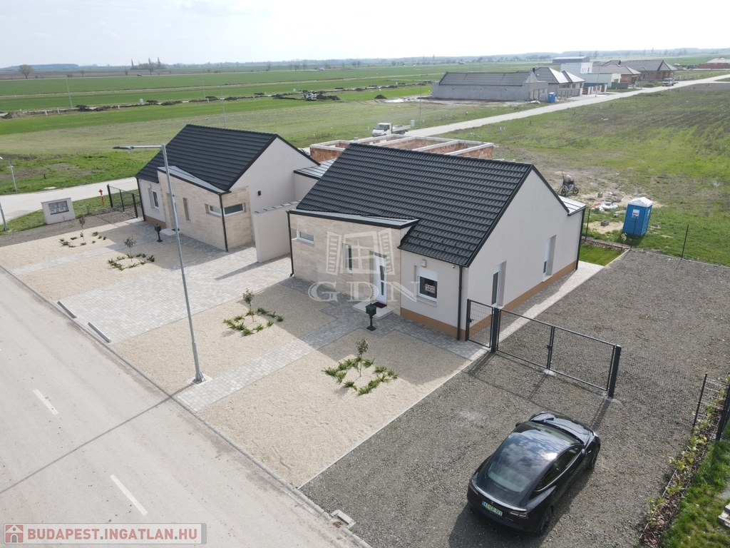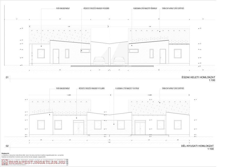 Jászberényben a Szatmári lakóparkban a Bársony utában, 798 m2-es telken, eladó 2db nettó 85,32m2-es + 12,83m2 terasszal és 16,31 m2-es gépkocsibeállóval rendelkező, 30-as Porotherm P30 N+F tégla falazóelemmel épült, fafödémes, 3 szoba plusz amerikaikonyha- nappalis kertkapcsolatos Ikerházfél.