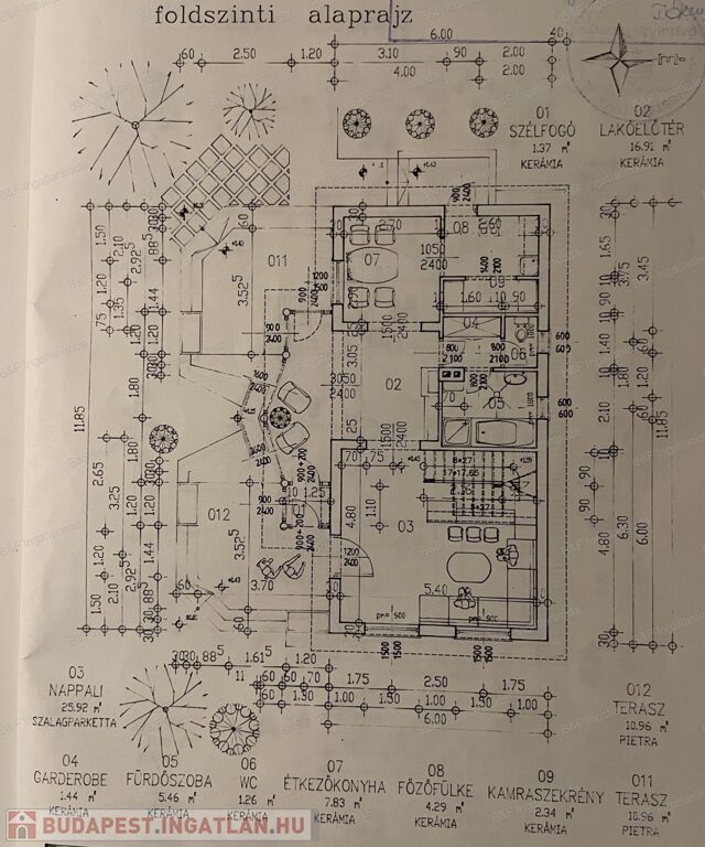 A telek rendezett, részben térkövezett részben parkosított ahol egy filagória is helyet kapott.