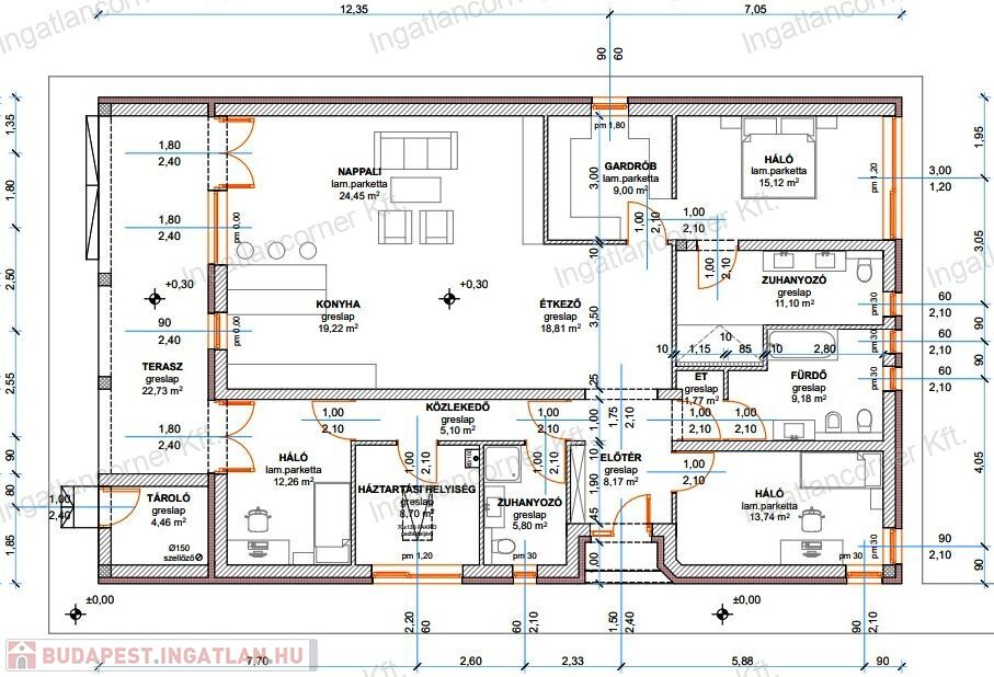 - TERASZOK: Az épülettel egybekoszorúzott 27m2-es fedett terasz.