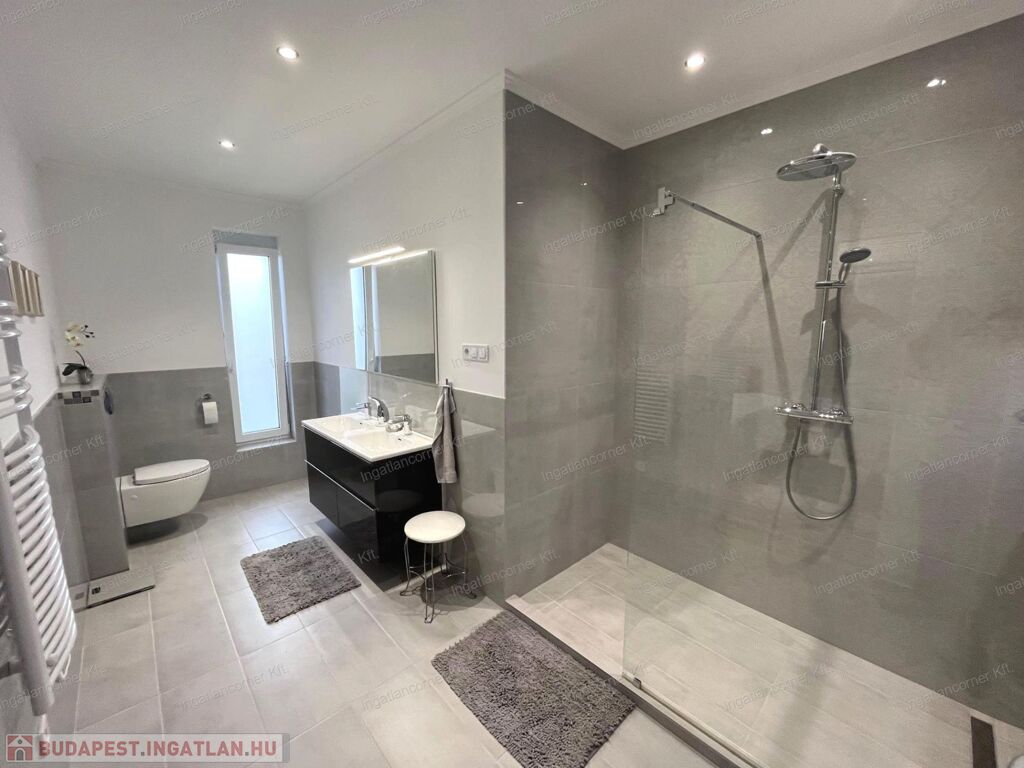 Fontos megemlítendő, hogy a szülői hálónak (master bedroom-nak) külön van egy saját gardróbszobája, ikermosdója és nagyméretű üveges zuhanyzója.