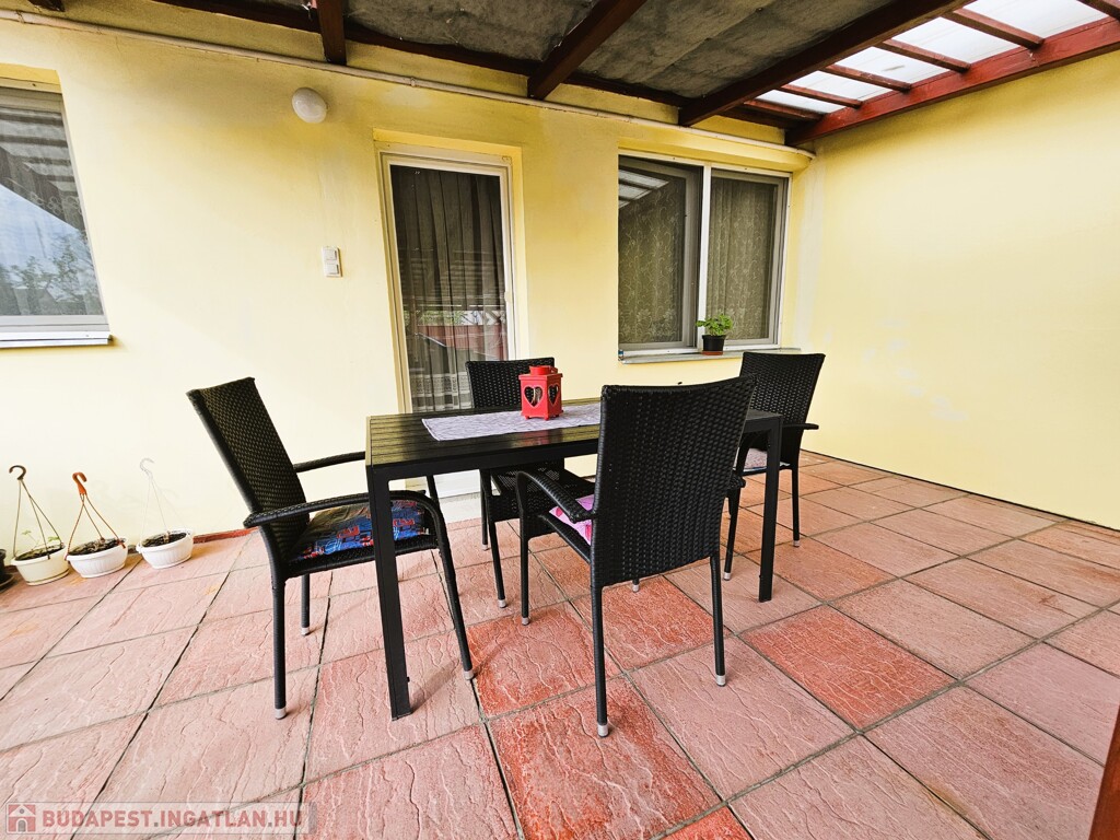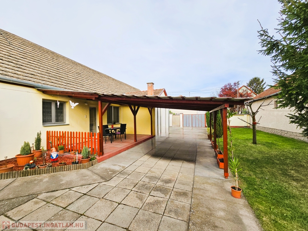 Nagyméretű fedett terasszal, parkosított udvarral rendelkezik.
