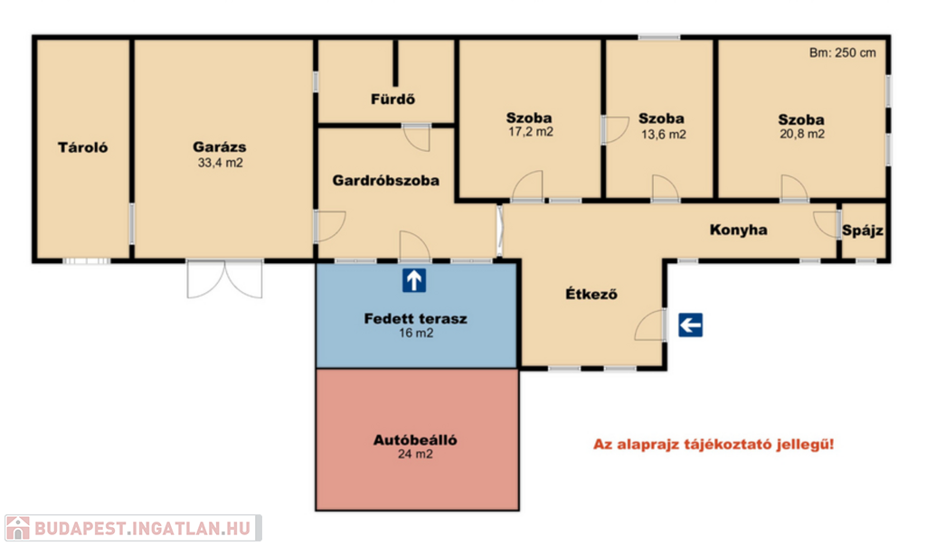 - Parkolás: garázs (33 m2) és autóbeálló (24 m2)