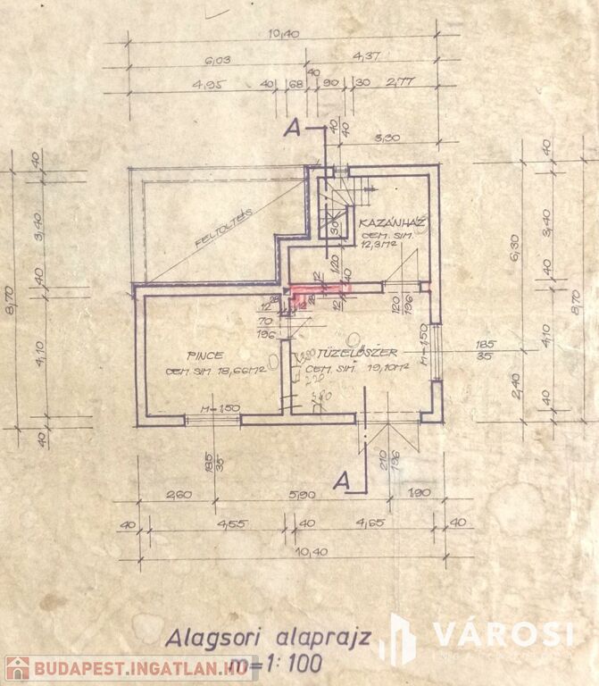 A pinceszinten tároló, műhely és kazánhelyiség a fűtési biztonság érdekében.