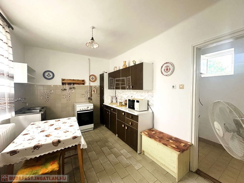 A 120 m2 lakóterületű, tégla építésű családi ház egy 600 m2-es telketerületen épült a 80'-as évek elején. A stabil, száraz, masszív és megbízható ház tulajdonosai folyamatosan gondoskodtak a karbantartásáról.