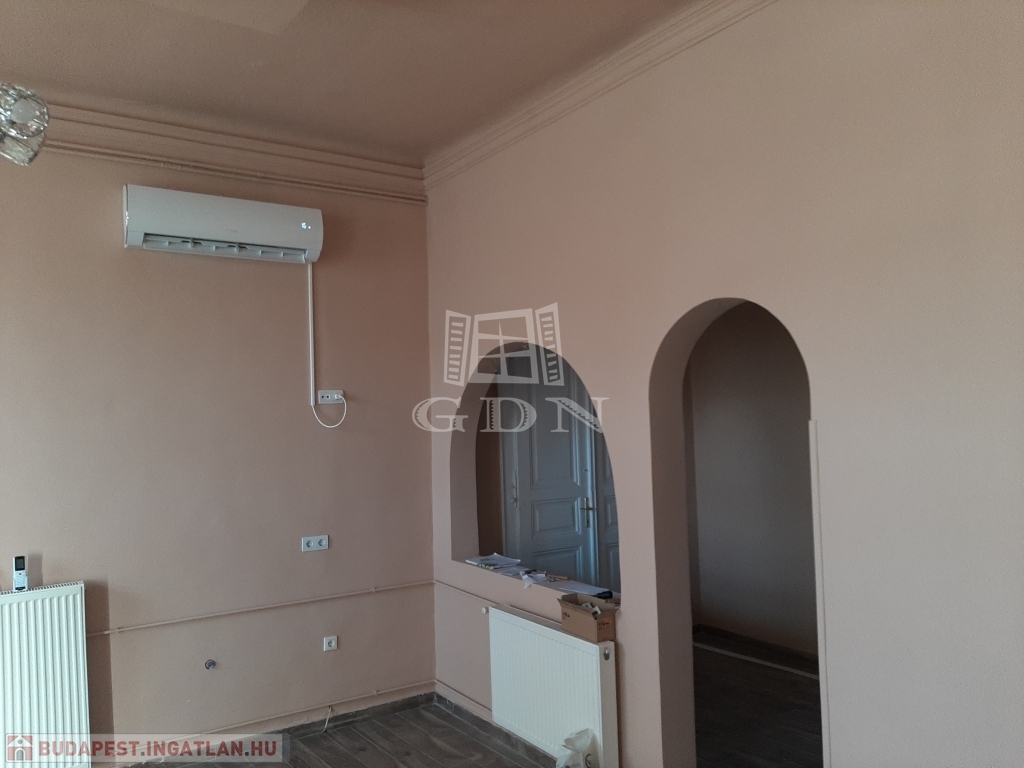 A kisebb rész, mely 42 m2 alapterületű, teljesen felújított, tulajdonképpen egy garzon lakásnak felel meg.