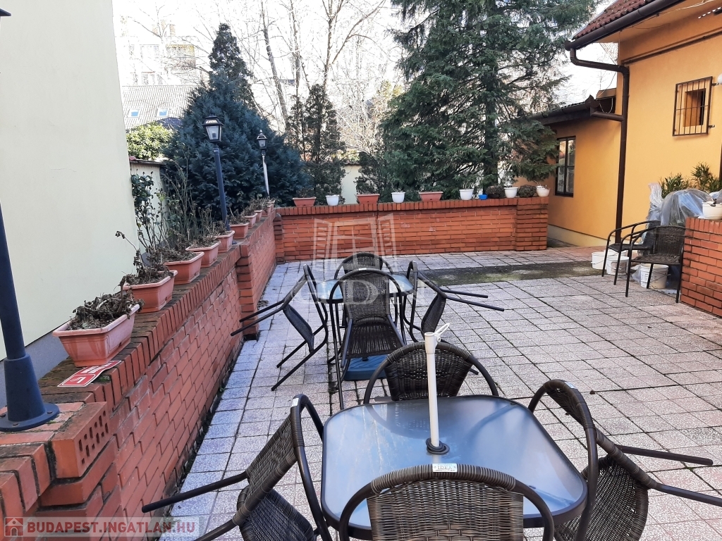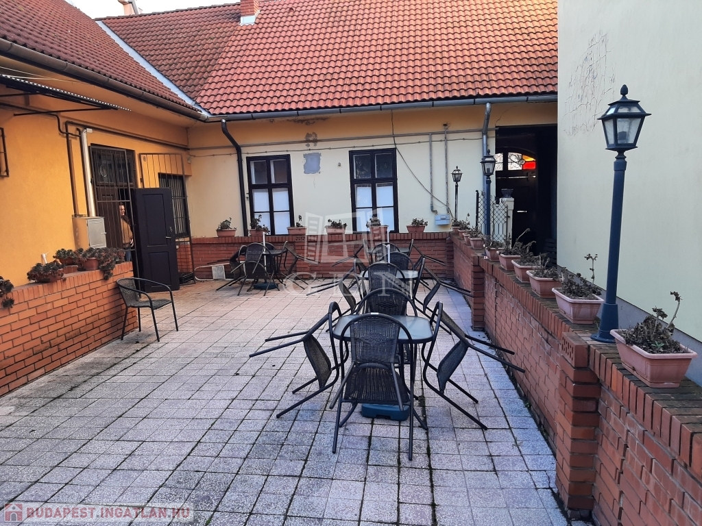 Az ingatlan udvari részén egy 23 m2 nagyságú terasz található, mely lehetőséget biztosít szabadtéri rendezvények lebonyolítására. Az udvar többi része parkosított.