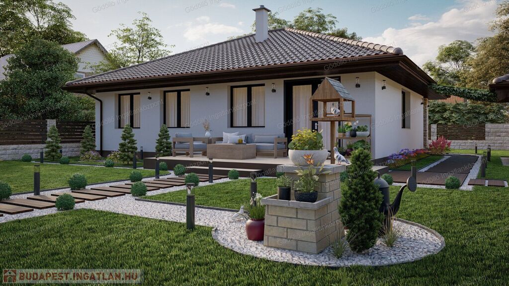 A bruttó 122, nettó 95nm-es házban előszoba, világos konyha-étkező, tágas nappali, beépített gardróbos közlekedő, 3 különnyíló szoba, fürdőszoba és egy háztartási helyiség kerül kialakításra zuhanyzóval, ill. tartozik hozzá egy 9nm fedett és egy 18nm nyitott terasz is.