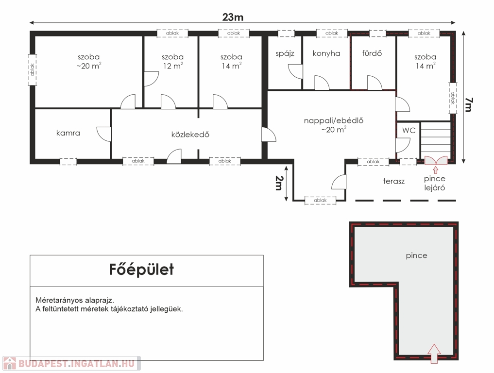 Pince alapterülete: 20 m²