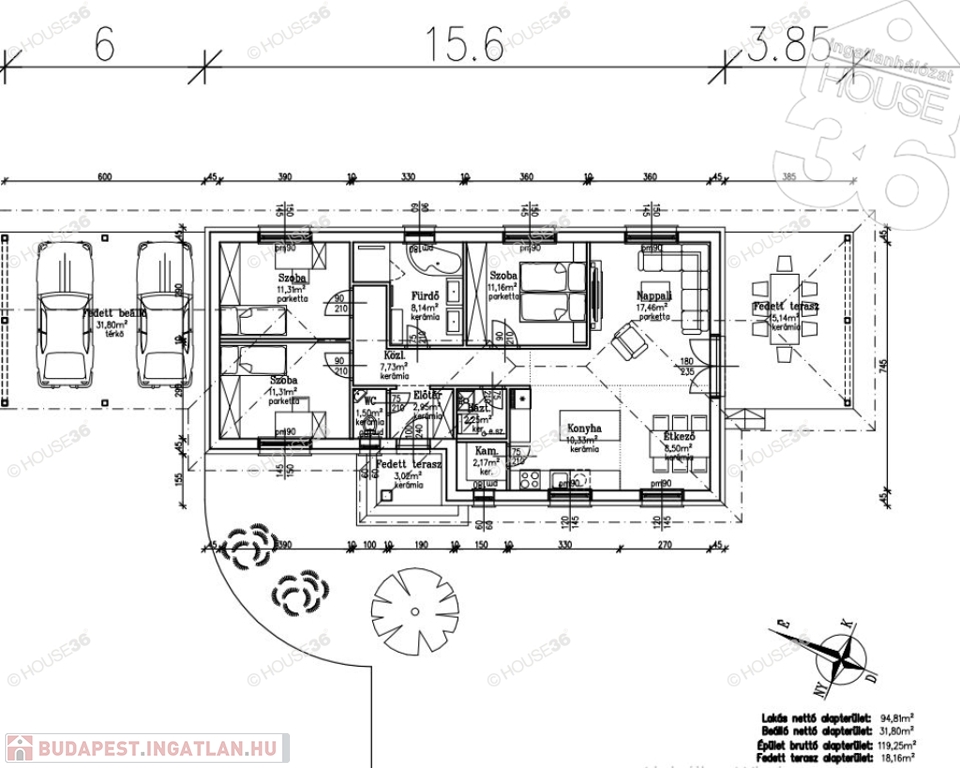 - 32 m2 fedett autóbeálló