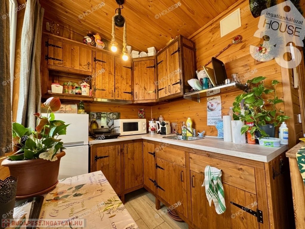 - Cuki kis szigetelt faház (27 m2) nagy (9 m2) terasszal - 1 szoba, konyha, fürdőszoba - praktikus elrendezéssel, modern kialakítással