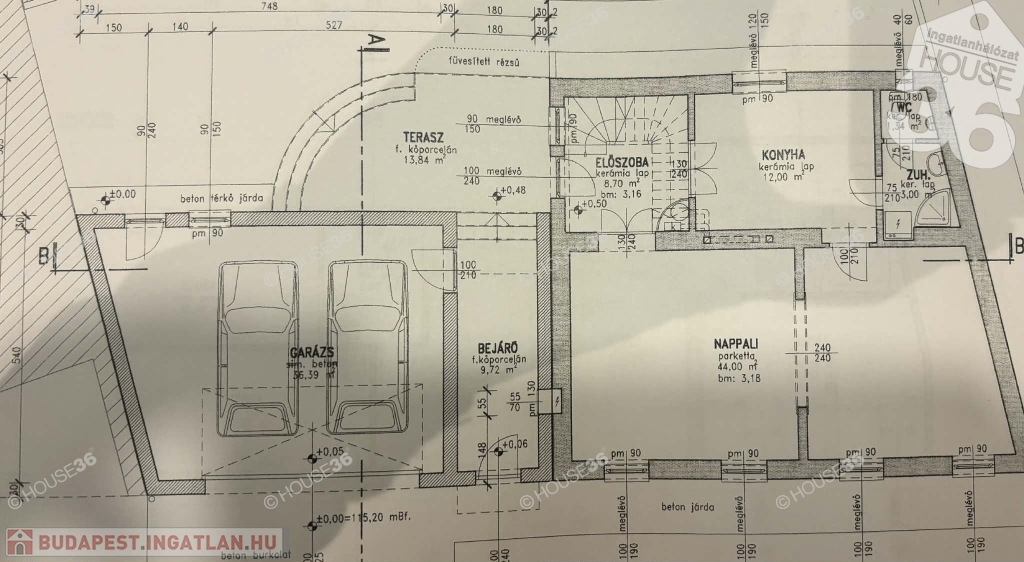 Elrendezés Földszint – a polgári elegancia tere: nagyvonalú előszoba dupla nappali, melyet a magas belmagasság és a bőséges természetes fény tesz igazán impozánssá konyha–étkező, zuhanyzós fürdőszoba